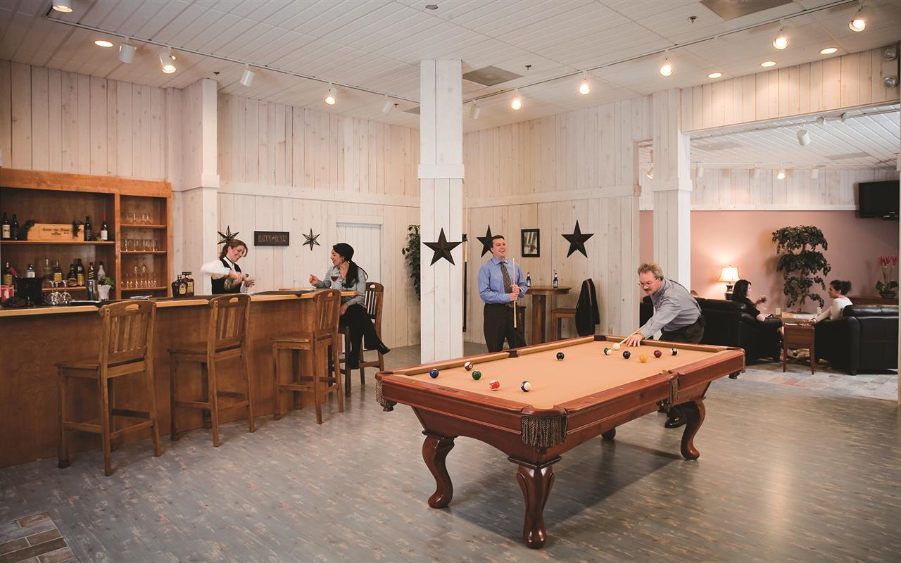 Enjoy a little downtime in the Manitou Hospitality Room, which features a wet bar, flat screen TVs, and seating.