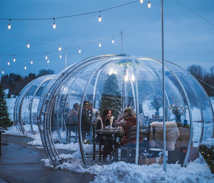 Experience Igloo Dining at the Clubhouse at Grand Traverse Resort and Spa this winter season! Our heated igloos offer a cozy and intimate setting for you and your loved ones to enjoy a meal for any occasion. Adorned with soft blankets, plush cushions, and charming lights, each igloo is a haven of comfort and style. Don't miss the opportunity to create lasting winter memories.